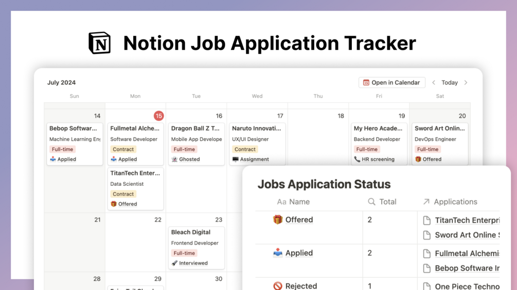 Achieve your career goals, stay motivated, and streamline your job search with our intuitive Notion template.